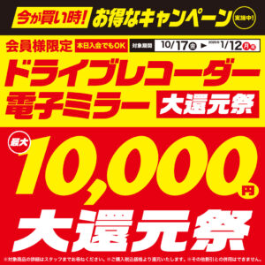 ドラレコ最大1万円大還元祭【10/17~1/12】 オートバックス会員限定、ドライブレコーダー大還元祭を2025年10月17日(金)~2026年1月12日(月祝)まで実施いたします。 オートバックス会員様[入会金・年会費無料/当日入...